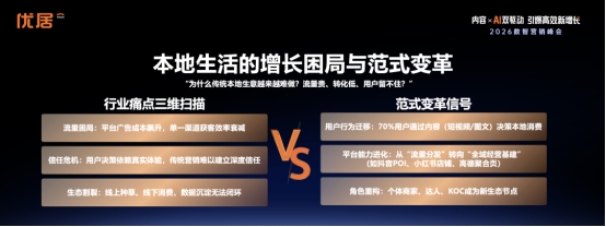 本次峰會不僅是一場思想的交鋒,更是一幅企業增長路徑的全景圖繪。從深度用戶洞察到內容范式革新,從AI助力提效到本地生活生態構建,優居以十余年深耕數智營銷的實戰積淀與技術實力,系統詮釋了“內容×AI雙驅動”如何成為企業高質量發展的核心引擎。