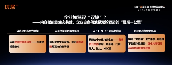 11月27日,由優居主辦的“內容×AI雙驅動,引爆高效新增長”——2026數智營銷峰會圓滿舉辦。