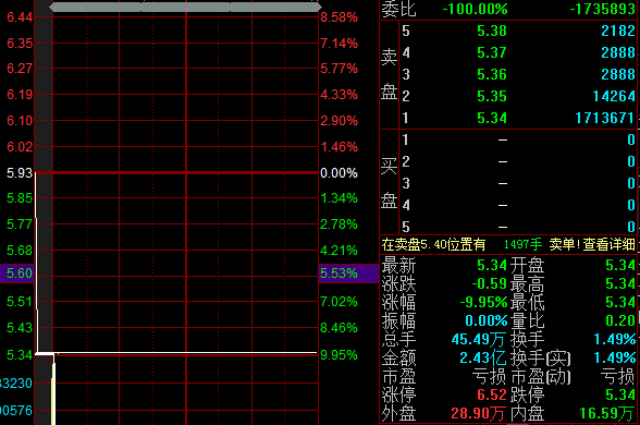 今天開盤后,樂視網(wǎng)被超過120萬手賣盤直接封死跌停板。該股收報5.34元,封單超170萬手,全天成交2.43億元。